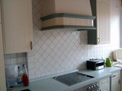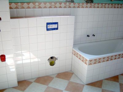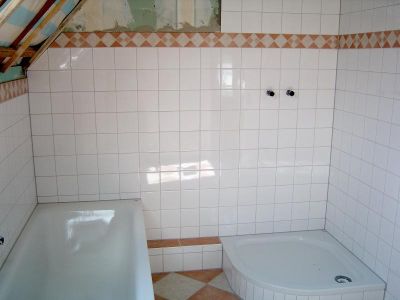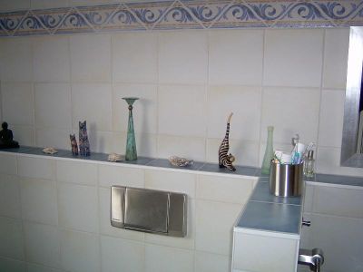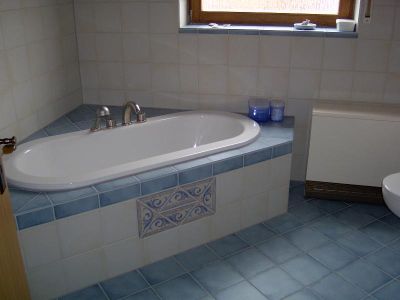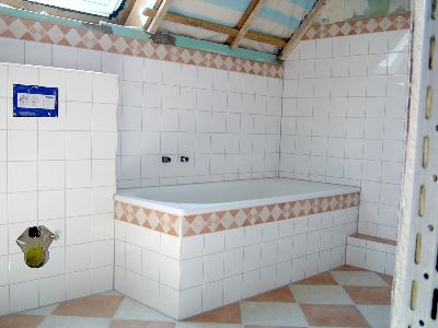 Baddecke aus Feinputz mit Fries und diagonalem Feld